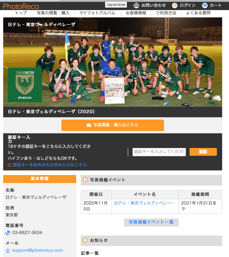 Photoreco写真販売サイトにて日テレ・東京ヴェルディーベレーザの公式フォト販売開始(現在は終了)